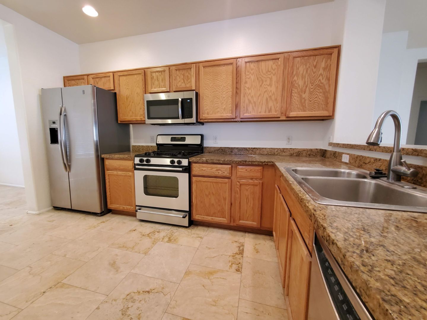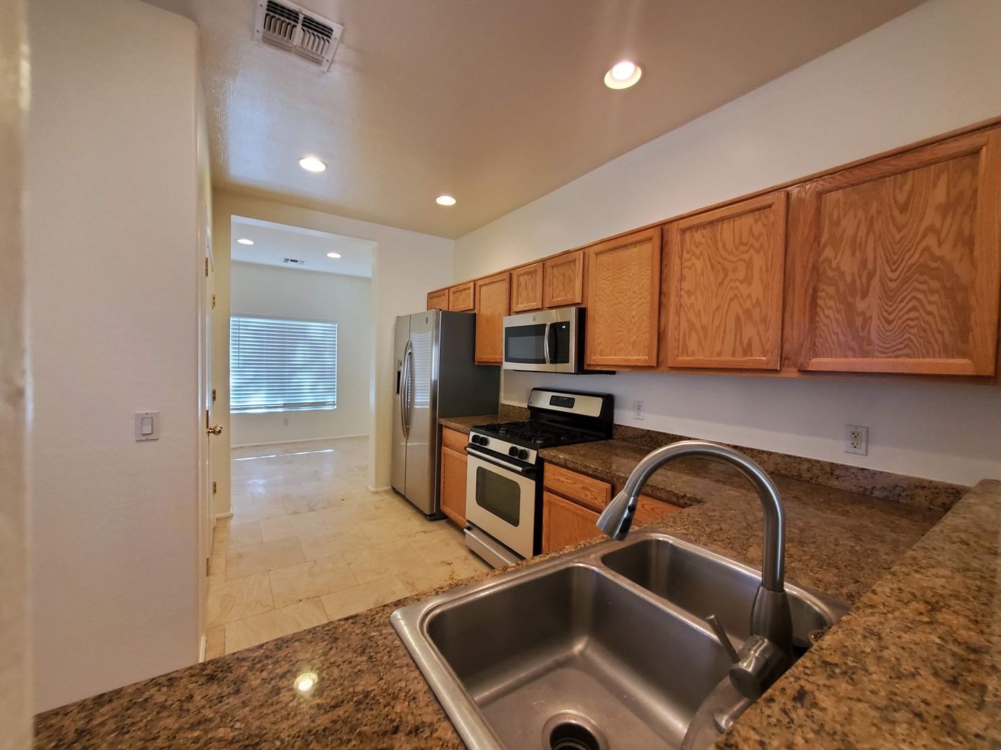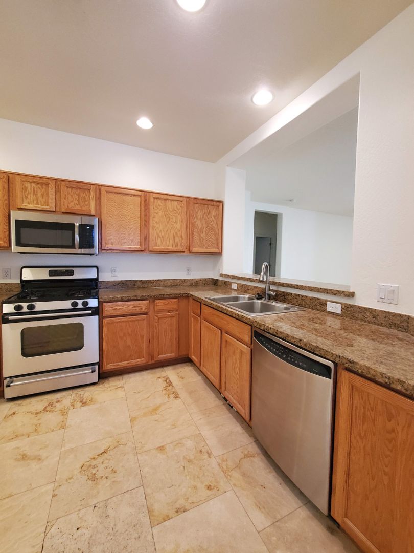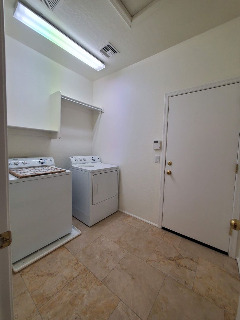 DOVE VALLEY/NORTH VALLEY PKWY. CAREFREE CROSSING SINGLE LEVEL 3 BEDROOM 2 BATH SPLIT FLOORPLAN HOME WITH TRAVERTINE TILE IN ALL THE RIGHT PLACES. LARGE GREAT ROOM AND KITCHEN WITH STAINLESS STEEL APPLIANCES, GAS RANGE, BREAKFAST BAR, LARGE CLOSET PANTRY AND SEPARATE FORMAL DINING ROOM. NICE SIZED BEDROOMS WITH CARPET AND FULL BATH. INSIDE LAUNDRY WITH WASHER/DRYER INCLUDED. PRIVATE MASTER SUITE WITH HUGE WALK IN CLOSET AND MASTER BATH WITH DOUBLE SINKS AND SEPARATE SHOWER AND GARDEN TUB. UPGRADED FIXTURES AND CEILING FANS. COVERED PATIO AND PRIVATE BACKYARD. EASY CARE DESERT LANDSCAPING. TENANT PAYS ALL UTILITIES AND CARES FOR LANDSCAPING.